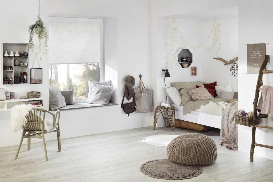 Rolety den a noc namontované na stěnu poskytují širší možnosti kontroly než klasické látkové rolety. Chcete-li ovládat množství světla přicházejícího do místnosti, stačí upravit úhly vodorovných pruhů. Tím snadno utlumíte množství denního světla v místnosti podle toho, zda chcete pracovat, odpočívat nebo sledovat televizi.